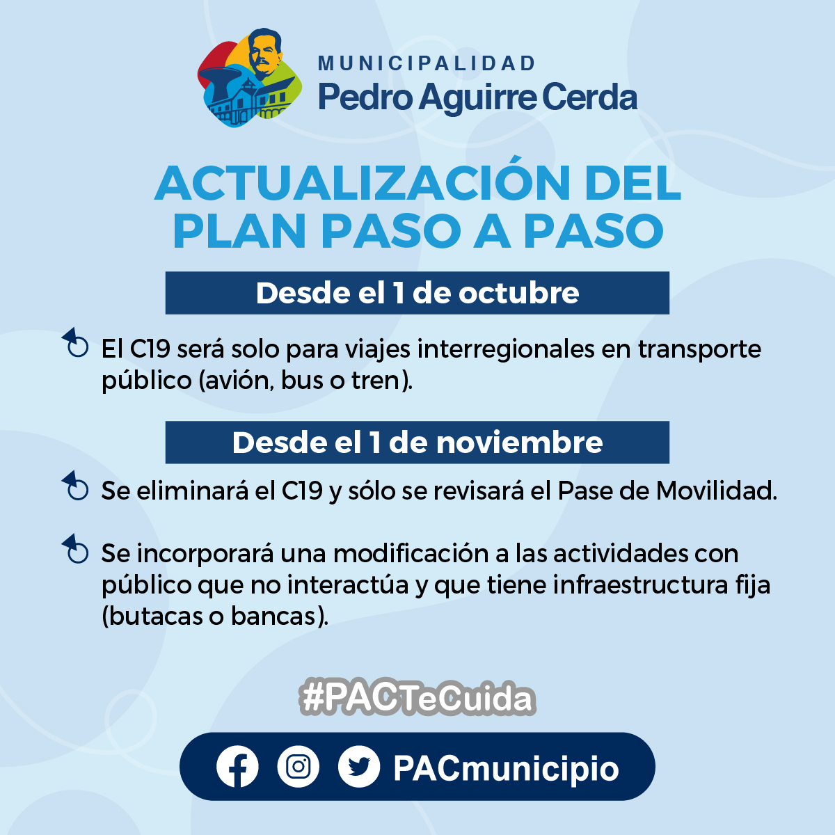 Con el fin al Toque de Queda en todo Chile, el Ministerio de Salud anunció una actualización del Plan Paso a Paso, las que tendrán vigencia a partir del 1 de octubre.
