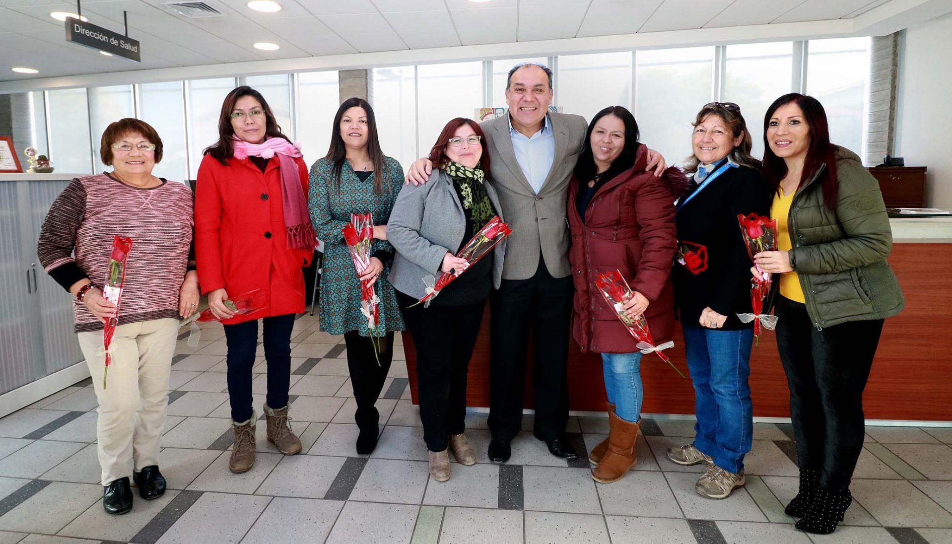 Además, el edil junto a los directores saludaron a las mamás del Edificio Consistorial, reconociendo en ellas a todas las mamás funcionarias de la municipalidad, instancia en que agradecieron su compromiso con los vecinos y vecinas de la comuna.
