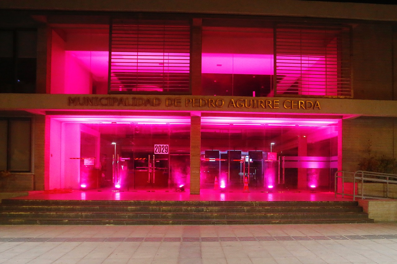En el marco de la celebración del mes contra el “Cáncer de Mama”, la Municipalidad de Pedro Aguirre Cerda a través del Departamento de Salud, realizó el encendido de luces de color rosa en el frontis del municipio, sumándose así a la campaña de la prevención y detección precoz de esta importante enfermedad.