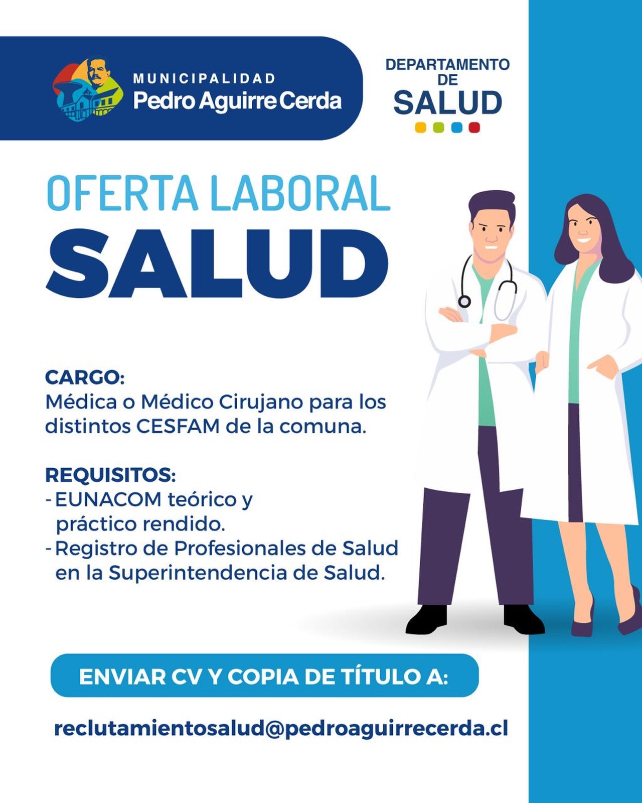 La Municipalidad de Pedro Aguirre Cerda abre proceso de postulación para el cargo de:
